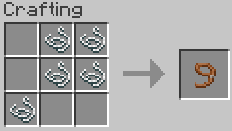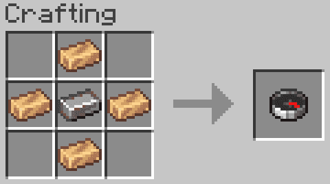 4x Bronze Ingot and 1x Iron Ingot makes a Compass4x Gold Ingot and 1x Iron Ingot makes a Clock6x Iron Ingots and 1x Stick makes 48x Rails6x Gold Ingots and 1x Stick makes 6x Powered Rails5x String makes a Lead