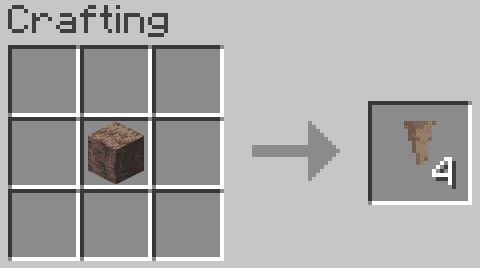 1x Dripstone makes 4x Pointed Dripstone1x of any color Wool makes 1x String3x Steel Ingot makes a Bucket! Iron can no longer craft buckets5x Gold Ingots and 1x Stick makes a Bell, to annoy all your friends!5x Charcoal and 4x Bonemeal makes Gunpowder2x Bronze makes shearsMojang Banner Pattern crafting recipe. Normally requires an enchanted golden apple in vanillaCreeper Banner Pattern crafting recipe. Normally requires a creeper skull in vanillaSkull Banner Pattern crafting recipe. Normally requires a wither skeleton skull in vanilla